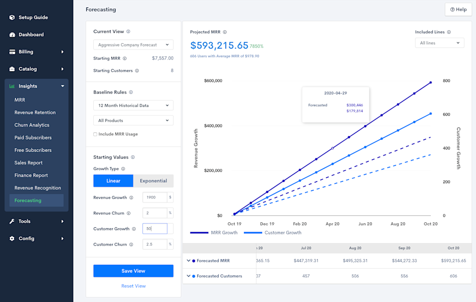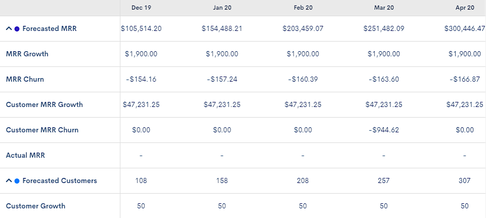 As a Billing and Revenue Management Platform, Chargify is uniquely positioned to analyze the past to help you better predict the future — and then track forecast against actual month-over-month progress.