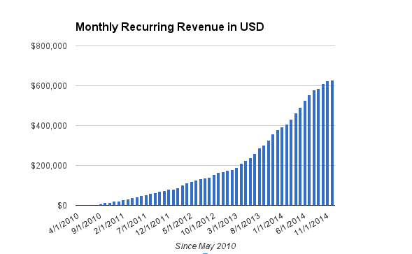 Unbounce has harnessed the power of customer success so well, they doubled their MRR twice within their first three years of business. Rapid growth has been a constant for the company (see the graph below), and they ended 2014 with over $7M in revenue!