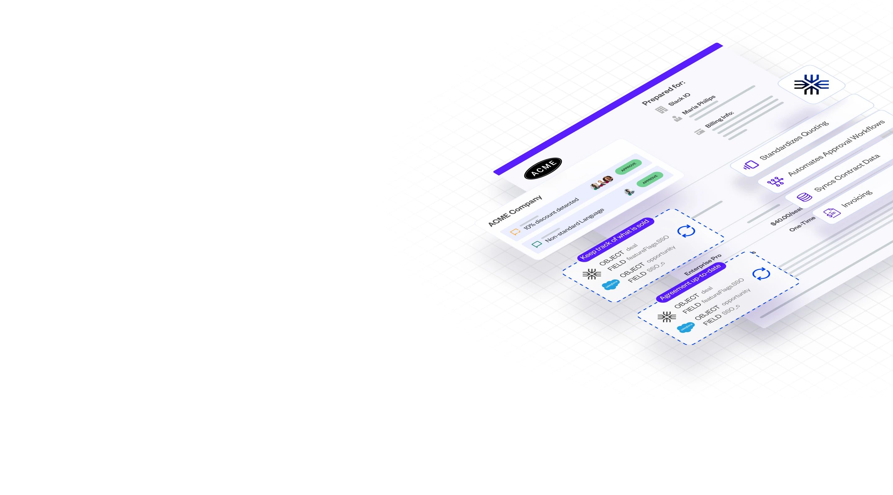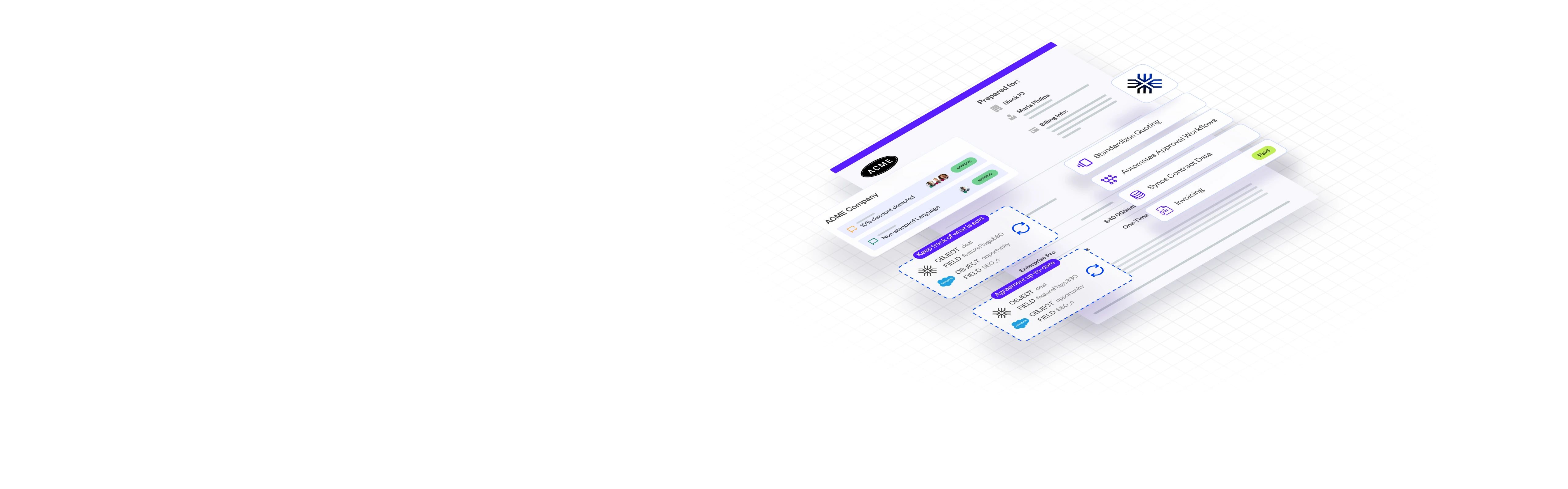 Combine quoting, approvals, contract execution, CRM syncing, and billing into one seamless workflow tailored to your business needs. Drive sales efficiency. Reduce friction between teams.